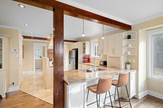 | Salle à manger | 12.5 x 10.5 P | Rez-de-chaussée | Bois |